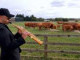 Former Britain's Got Talent finalist Julian Smith tries to entertain a herd of South Devons.