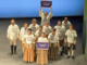 Chorus members stage a protest against cutbacks at the end of a show in Cardiff.